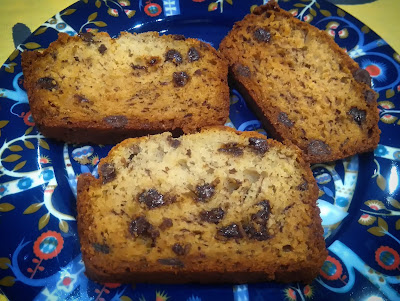 Tein myös banaanileipää, ja kun kaapissa oli avattu pussi suklaahippuja, laitoin ne mukaan taikinaan..